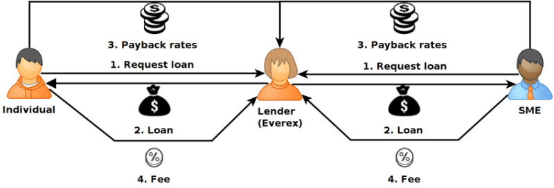 크레딧코인의 경우 대출자는 대출 금액 및 이자율을 포함한 투자 제안서를 크레딧 코인 네트워크에 업로드하여 투자자를 모집하는 방법이고, 투자하는 제안서를 토대로 투자가 가능하다. 모든 거래 및 트랜젝션은 이더리움 네트워크에 저장된다.