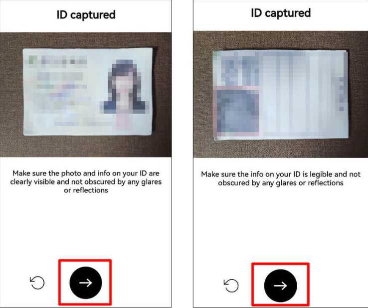 이어서 네모난 프레임에 신분증을 잘 맞춰주신다면 자동으로 사진 촬영이 됩니다. 이런 방법으로 앞면과 뒷면 모두 촬영해 줍니다.