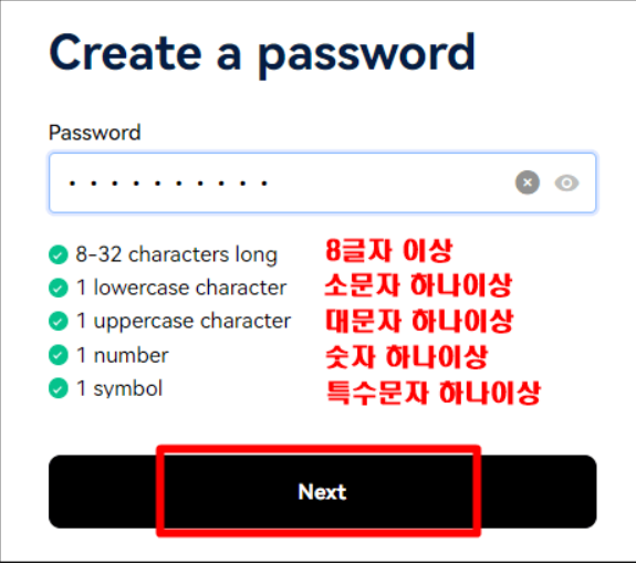 이어서 비밀번호 입력 후 'Next' 버튼 클릭합니다.
