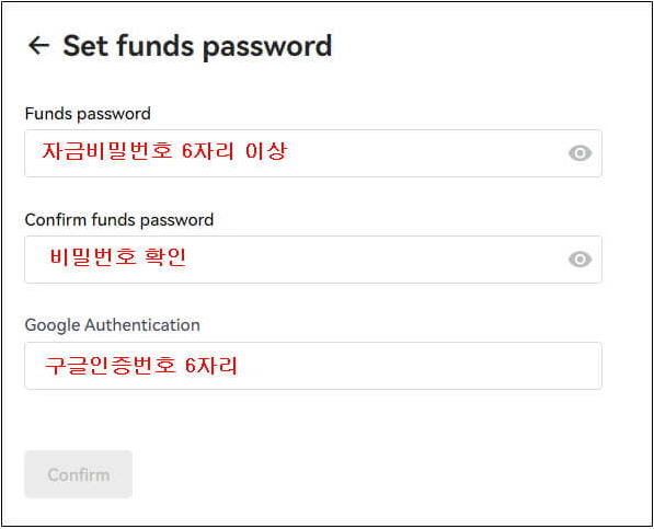 비밀번호(6자리 이상) 입력 후 'Confirm'을 누르면 모든 보안 설정이 끝나게 됩니다.