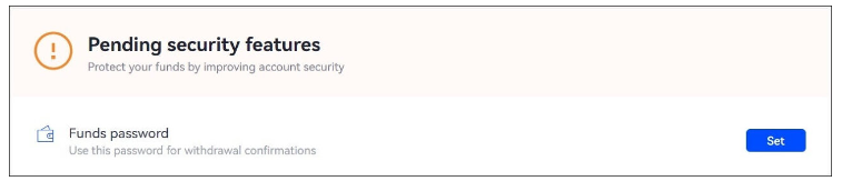 이제 마지막으로 자금 비밀번호만 설정하시면 됩니다. 다시 우측 위 메뉴에서 사람모양에서 Security Settings으로 들어갑니다. 그다음 Funds password 옆에 Set 버튼을 클릭합니다.