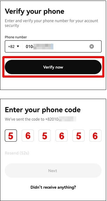 이어서 휴대폰 인증을 해달라는 메세지가 나오는데, 안 나오시면 넘어가시면 되고, 나오신다면 휴대폰 번호를 입력 후 'Verify Now'를 누르고 인증을 진행해 주시면 됩니다.
