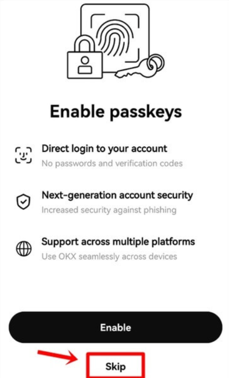 그 이후 'Passkey'를 등록하라는 창이 나오는데, 다음에 하기로 하고 스킵을 눌러줍니다.