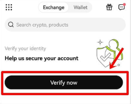 이제부터 본인 인증시작입니다. 모든 거래 및 런치패드를 참가하시려면 본인인증이 필수이기 때문에 본인인증을 꼭 하셔야 합니다. 어플을 켜서 상단에 있는 'Verify Now'라고 적혀있는 부분을 클릭하여 들어갑니다.